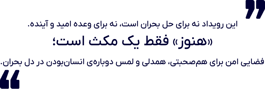 در روزهایی که بسیاری از ما درگیر آزمونهای سختِ زندگی، کار و جهان بیرون هستیم، جایی برای گفتوگو، شنیدن و کنار هم بودن میتواند معنا و انرژی تازهای بسازد. رویداد «هنوز»، یک عصرانه چندساعته است برای آنهایی که ماندهاند، دوام آوردهاند، و میخواهند لحظهای بیپرده از زیستِ این روزها بگویند.